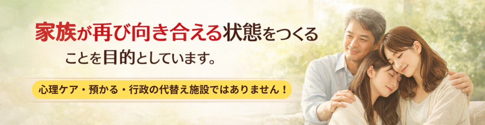 病院や行政では難しい症状にも、時間をかけて関係を立て直すことで回復を目指すうえでの重要な手伝いが可能です。